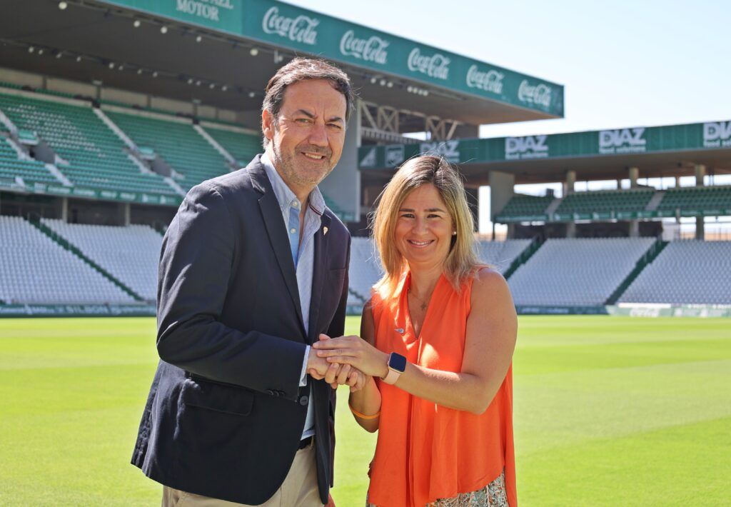 Este acuerdo ha sido rubricado en nuestras instalaciones de El Arcángel por el CEO del Córdoba CF, Antonio Fernández, y por la Jefa de Asuntos Públicos, Comunicación y Sostenibilidad Región Suroeste de Coca Cola Europacific Partners Iberia (CCEP), Beatriz Codes.